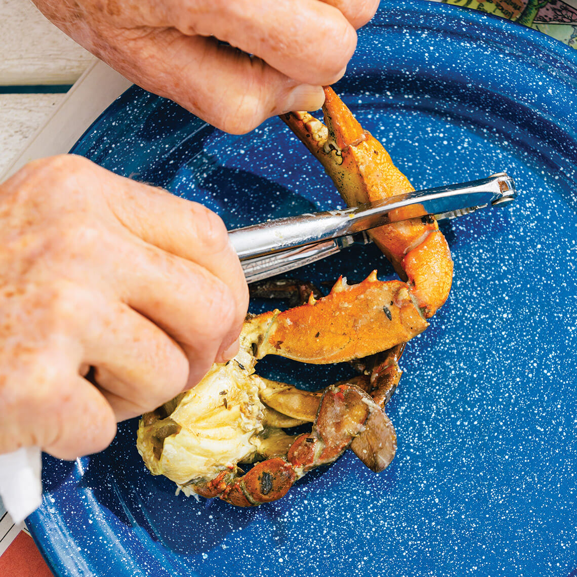 3) Crack claw with nutcracker or pair of small pliers.<br><span class="photographer">photograph by Baxter Miller</span>