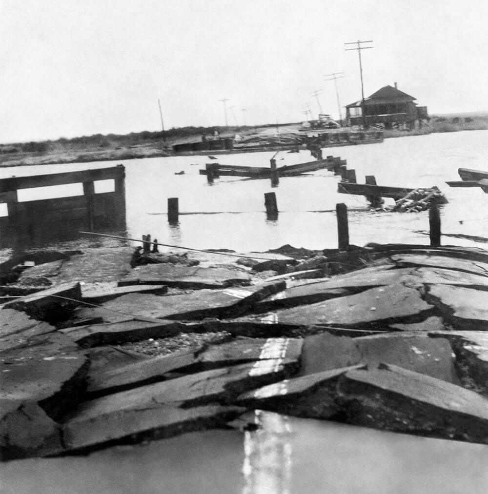 The damage the hurricane did to bridges along the Outer Banks cut off communities like Manteo from civilization in the storm’s aftermath. photograph by Ocracoke Preservation Society