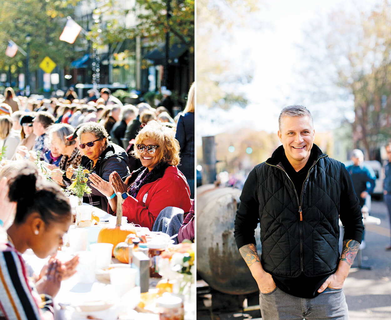 Kohn’s response: “I’ve got this crazy idea. I cannot do it by myself.” Her idea: stretch a long dinner table down Fayetteville Street for a 1,000-seat dinner that would raise money to help others. The youngest of seven children, Kohn has strong memories of her family’s Sunday suppers. “There was no radio, no television. The phone was off the hook. There was so much nourishment beyond the food at the table,” she says. “I didn’t realize how important it was to me until that hurricane — and that acrimonious presidential campaign, which led to our work places, churches, and homes being fractured. But these are all our people. We needed to do something for our people.”