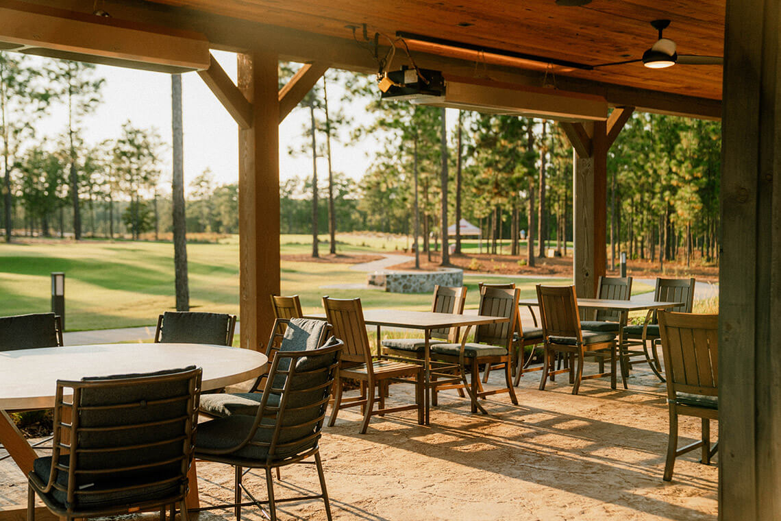 Settle in on the patio and enjoy watching the activity on the No. 10 course. Photography courtesy of Pinehurst Resort