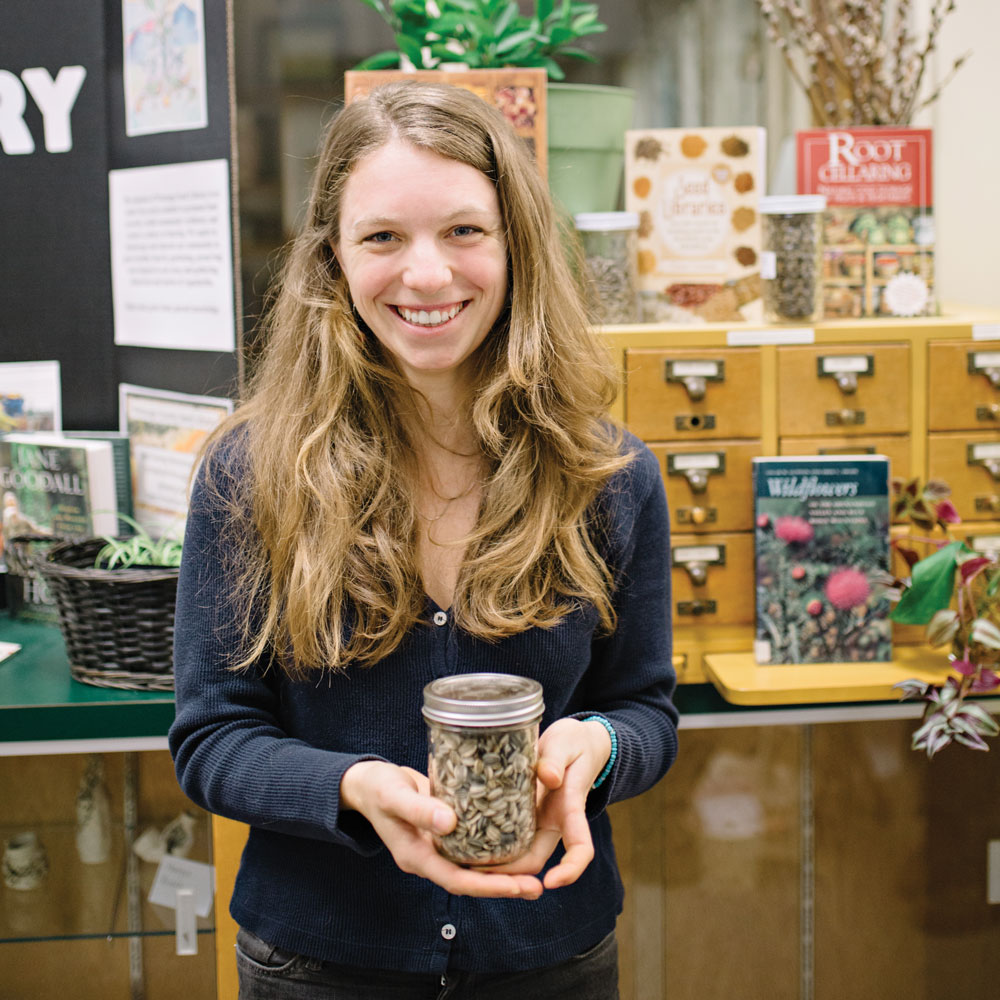 Stories often come with the precious seeds that gardeners drop off at the library in Boone. Lindsey Giglio puts donations in packets and files them for use. photograph by Revival Creatives