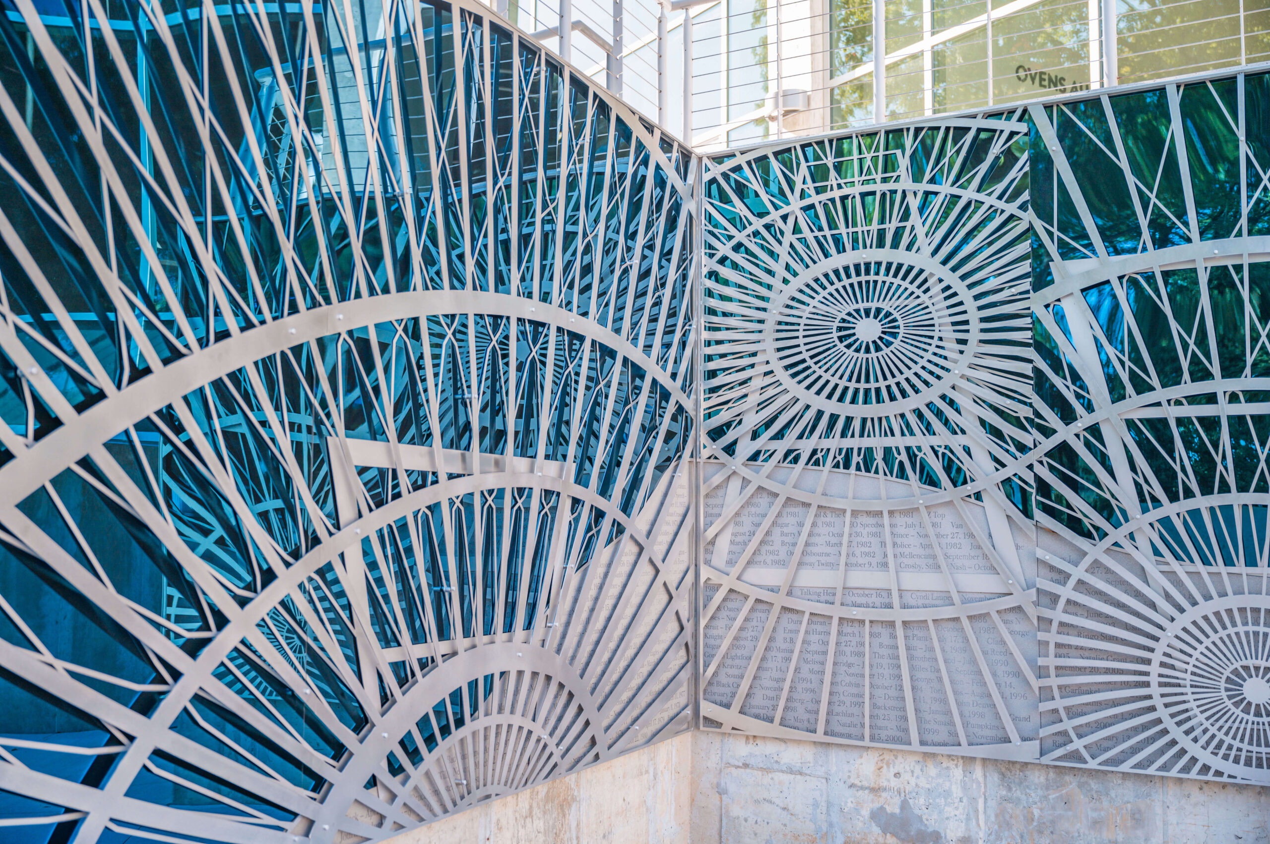 Blane de St Croix’s installationf eatures the names of performers and events who have been part of the Bojangles Coliseum and Ovens Auditorium’s 65-year legacy. photograph by Charlotte Regional Visitors Authority