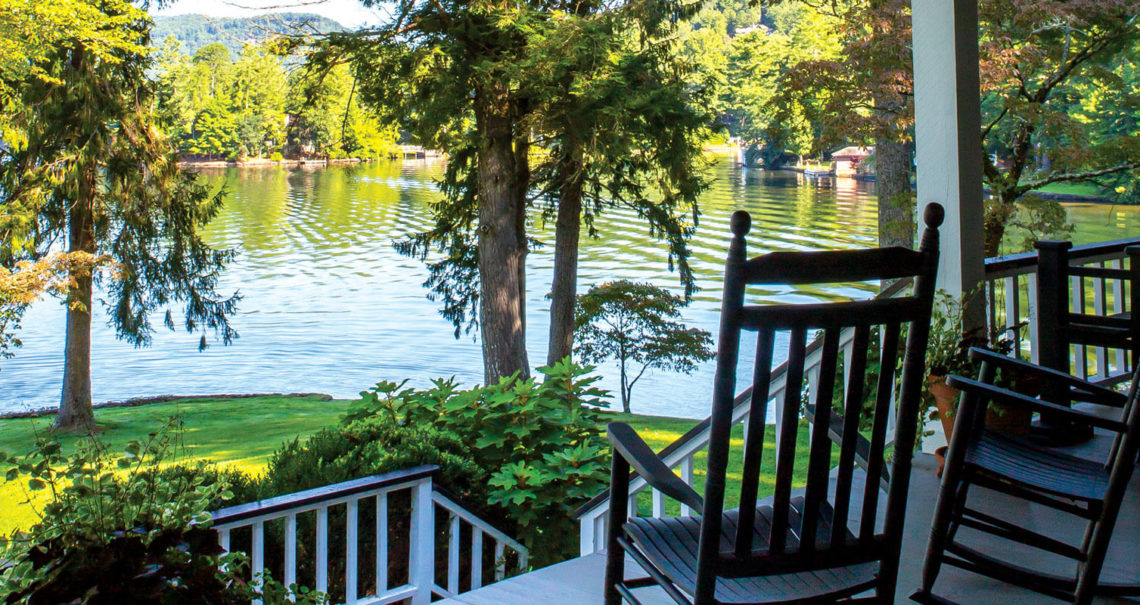 But this porch’s history has a happy ending. When caretaker Tolvin Miller’s elderly granddaughters stepped back onto the porch of the house where they’d lived for all those years, both began sobbing. “Crying and crying,” Nichols says. In all their time on this porch, the sisters had looked at nothing but the scrub growth overtaking an empty lakebed. Now, they looked out and saw the real thing: Lake Toxaway. Their tears were of wonder and joy. Nor was the happiness only theirs; when the pair identified landmarks — a boathouse, a rock gazebo — on a sepia panoramic, Nichols knew for certain that the historic photograph had been taken from the porch he was standing on.