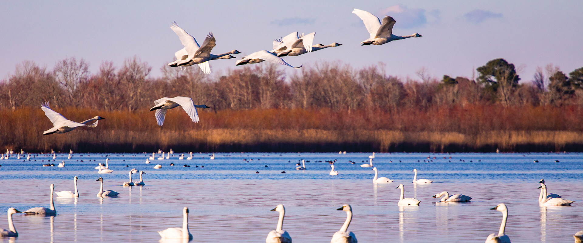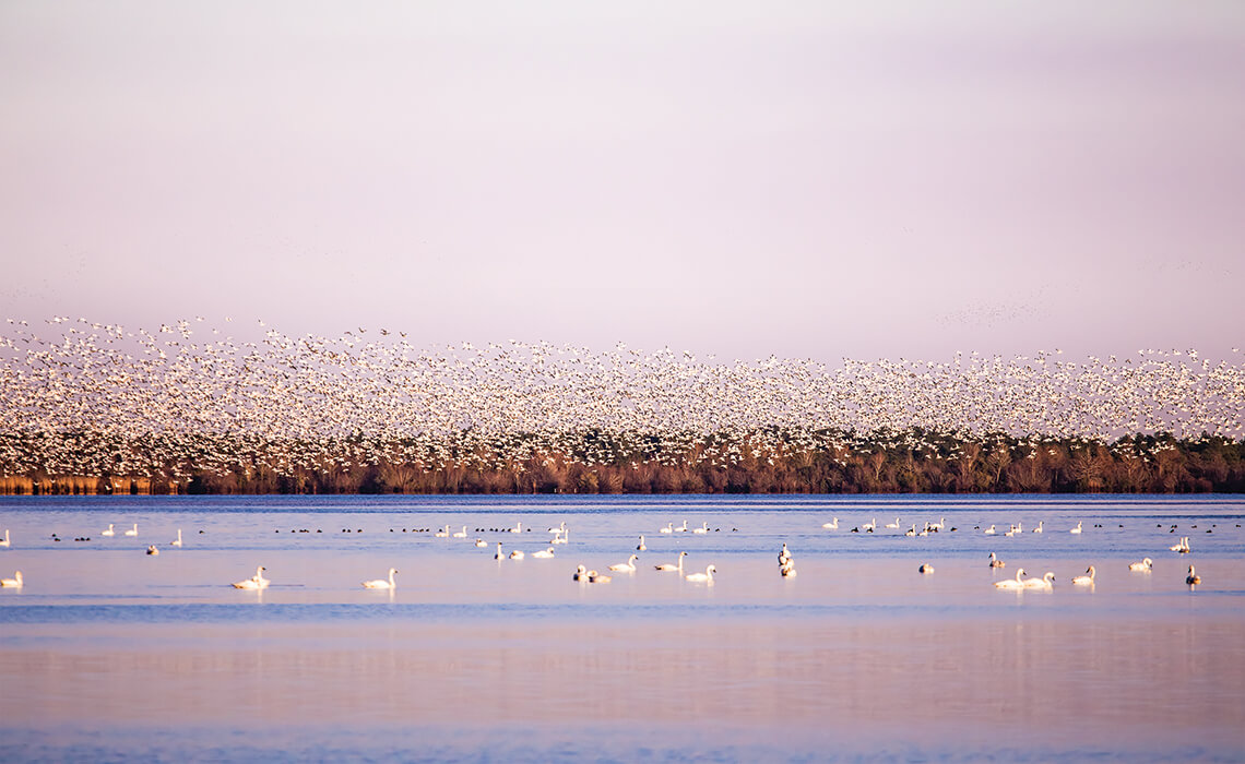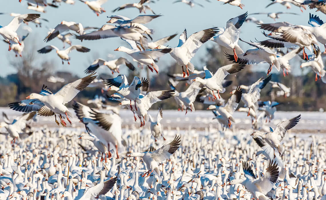 Of the many species of waterfowl that visit the Pocosin Lakes National Wildlife Refuge, the snow geese are some of the most flamboyant — and loudest. photograph by Allen Phelps Photography