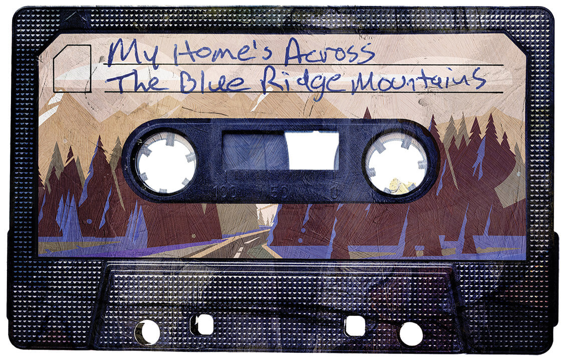 Fall foliage draped over Yadkin Valley like the patchwork quilt that my grandmama tossed across an old rocking chair in her spare bedroom. Yellows, reds, and greens burst from a backdrop of dull brown. Standing at Elk Mountain Overlook in Watauga County, I breathed in the cool October air. Spanky, my English setter with floppy black ears and symmetrical spots on his head and back, sat dutifully by my side, tongue resting on his bottom canines and mouth forming what looked like a big, peaceful smile. It was fall break, and I needed the 260 miles of distance between myself and my English and philosophy classes back at East Carolina University. The day before, I’d packed my little Toyota Corolla with warm clothes, a knotty wooden walking stick, a Gibson Hummingbird guitar, and a 90-minute cassette tape scrawled with the title My Home’s Across the Blue Ridge Mountains.