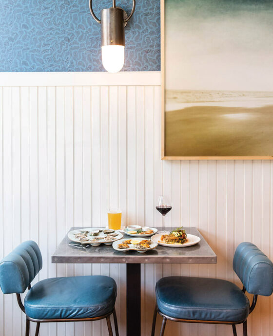 Chef Dean Neff is immersed in a conversation with guests at Seabird when he notices Conor MacNair of N. SEA. Oyster Co. walking through the dining room, still sporting gear from collecting the mollusks. MacNair carries the bounty to the open kitchen, where one of Seabird’s skilled shuckers will prepare the oysters as orders come in.