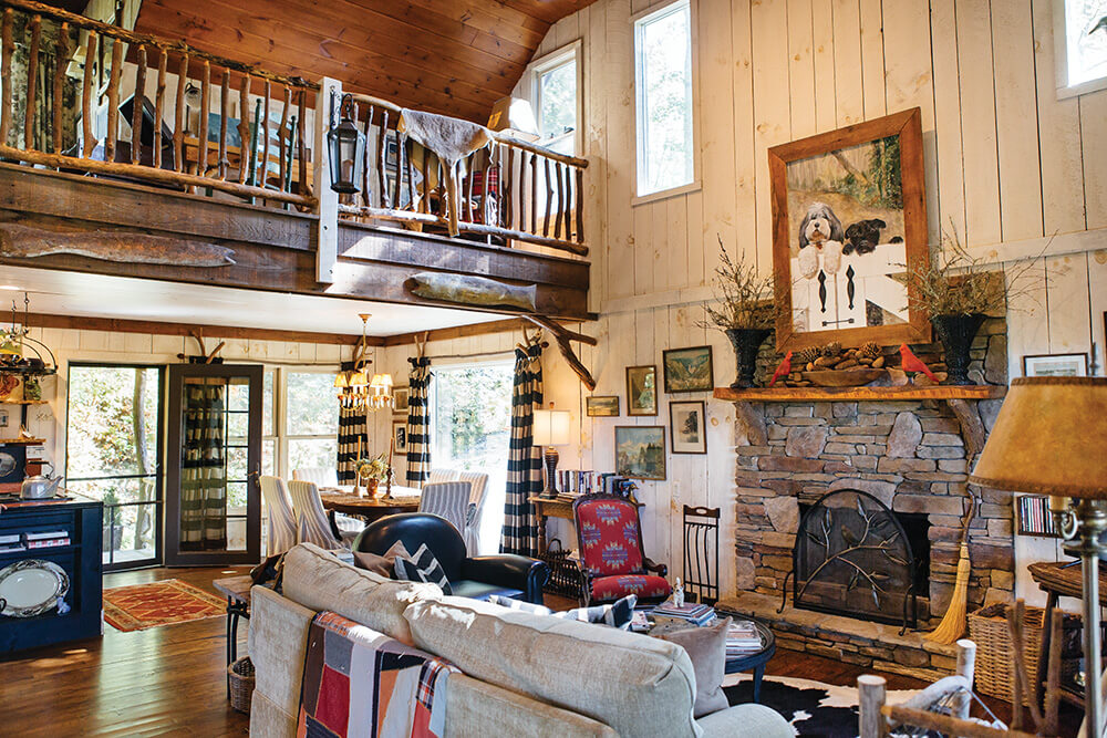 A high ceiling and rustic, hand-crafted details make The Partridge Nest a warm and airy retreat, which is exactly what owners Jean and Charles Brendle hand in mind.