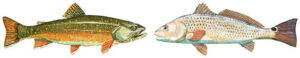 You can’t even call them kissing cousins, not really. Scientifically speaking, the brook trout and the red drum — aka redfish, channel bass, puppy drum, or plain ol’ red — split way down the taxonomic tree trunk long, long ago. They are as different as a ruby-throated hummingbird and a great blue heron.
