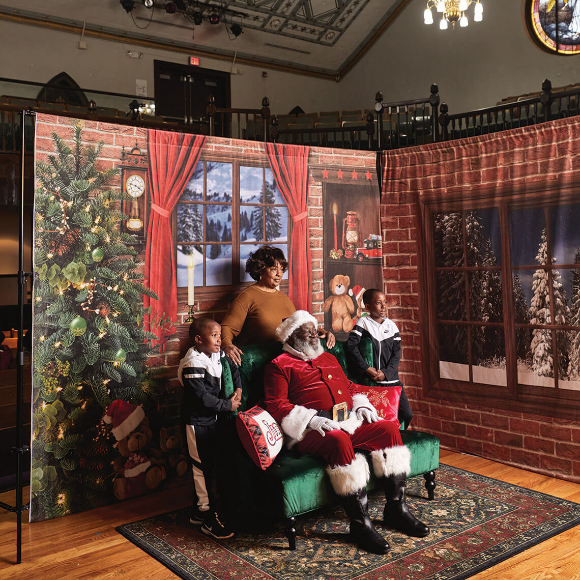 On this December day, the atmosphere at the Hayti feels electric. Despite a chilly drizzle outside, the curved and gleaming pews in the 131-year-old former church are packed with single-parent, nuclear, and multigenerational families. Some wear matching T-shirts emblazoned with their last names — the kind you see at family reunions. Others are in their Sunday best. Fidgeting siblings bump each other’s shoulders, the maximum roughhousing that parents will allow today. But patience is wearing thin. After waiting for what seems like an eternity, the toddlers are struggling to hold it together.