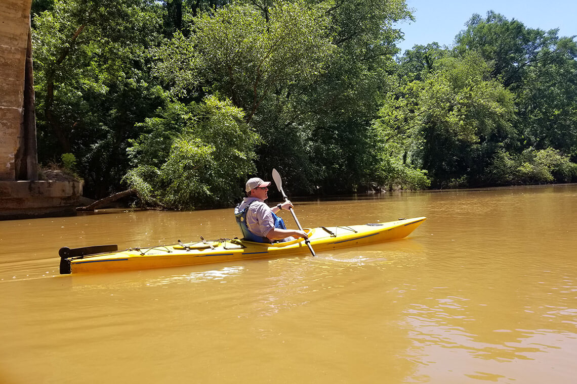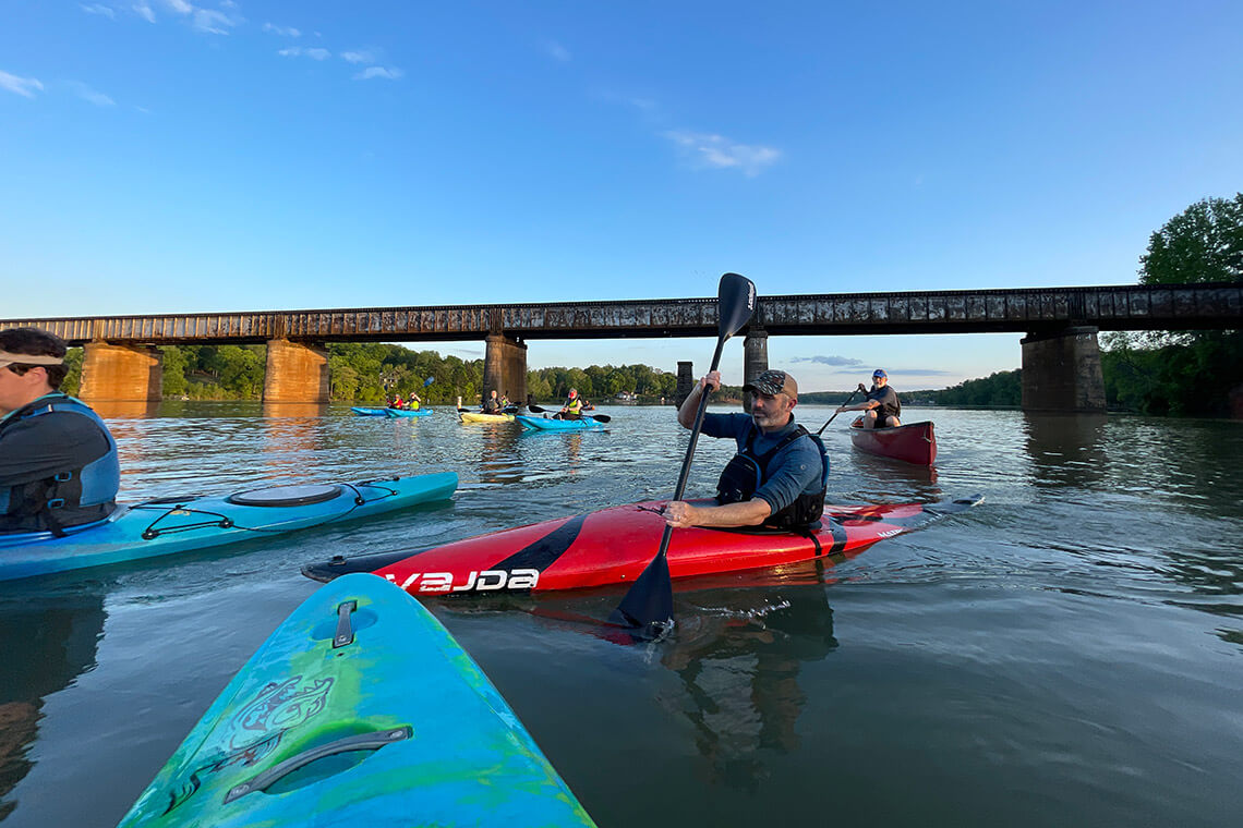 Along its 225-mile path, this important waterway winds through wooded countryside and urban areas alike and provides drinking water and power generation for approximately three million people, plus recreation opportunities — via lakes, parks, and paddling accesses — to millions of residents and visitors each year, including Searby. “Anytime I’m paddling, I’m communing with nature,” he says. “You don’t have to go very far, and everything becomes quiet and serene. When I get on one of the free-flowing sections of river between our lakes, I always feel a sense of calm and peace.”