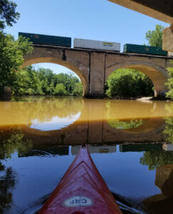 On the South Fork of the Catawba in Cramerton, paddlers can find shade beneath a bridge. Photography courtesy of Catawba Riverkeeper