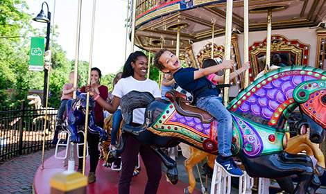 Uptowne is a kids’ paradise of play spaces and activities. A good place to start is the Nido & Mariana Qubein Children’s Museum. Pick up a sensory guide, fidget, or noise-reducing headphones at the admissions desk at this Certified Autism Center. The museum offers two floors of hands-on exhibits to explore. Climb to new heights, scale a cityscape like a superhero, explore Mars, or tackle an engineering project in the STEAM Lab. Outside adventures await in the Adventure Zone. Dig for fossils or learn about pollinators in the garden. The whole family will love a spin on the double-decker carousel.