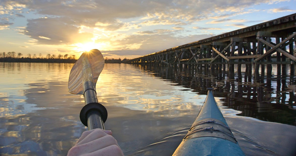 Situated right where the Tar River ends and the Pamlico River begins in Beaufort County, Washington was the very first city to be named after George. Yep, even before our country’s capital. Here, the river provides a perfect environment for wildlife to thrive, as well as opportunities for human visitors to spend afternoons wandering the mile-long waterfront promenade, paddling the Pamlico, exploring the shops downtown, and eating storied hot dogs under the oak trees at the Town Commons. Whether you’re looking to board a boat or relax on a wraparound porch, we’ll tell you how to spend a weekend at the river.