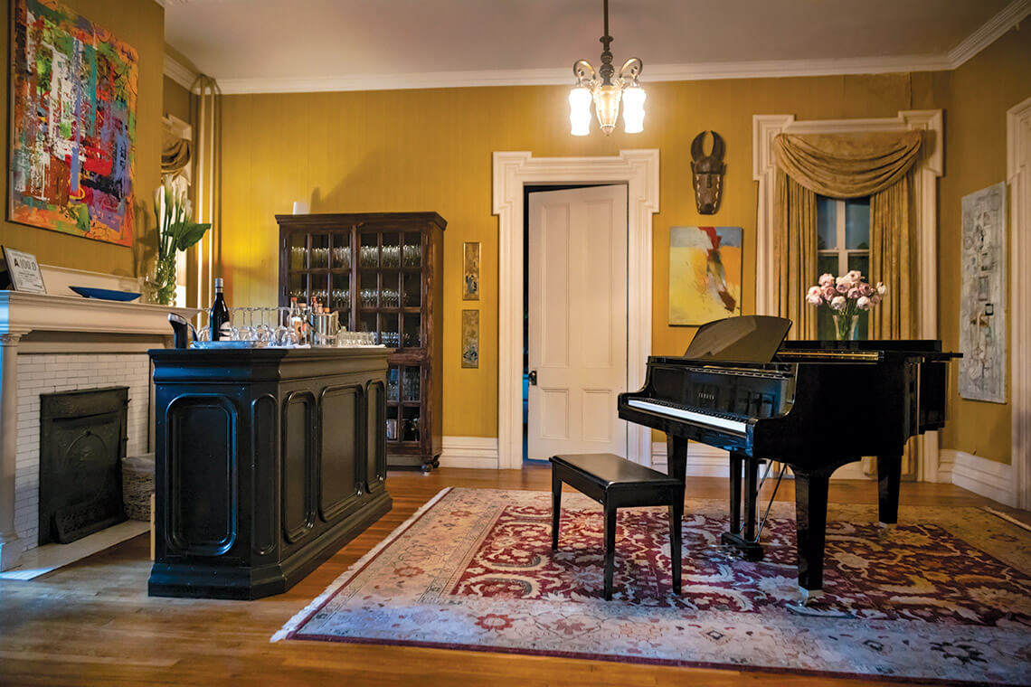 Stays often begin with a cocktail and a tune on the couple’s baby grand piano.<br><span class="photographer">photograph by Charles Harris</span>