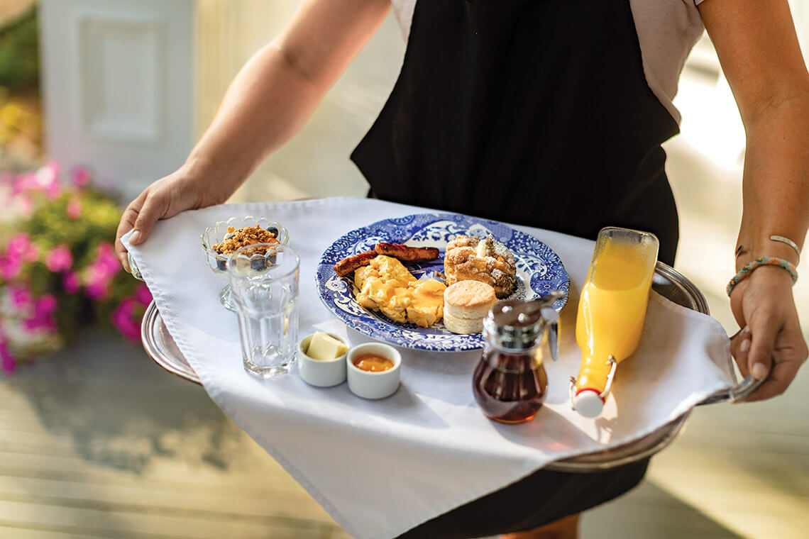 At Elmwood 1820, mornings begin on the inn’s impressive front porch, with Richard’s creative take on the most important meal of the day.<br><span class="photographer">photograph by Charles Harris</span>