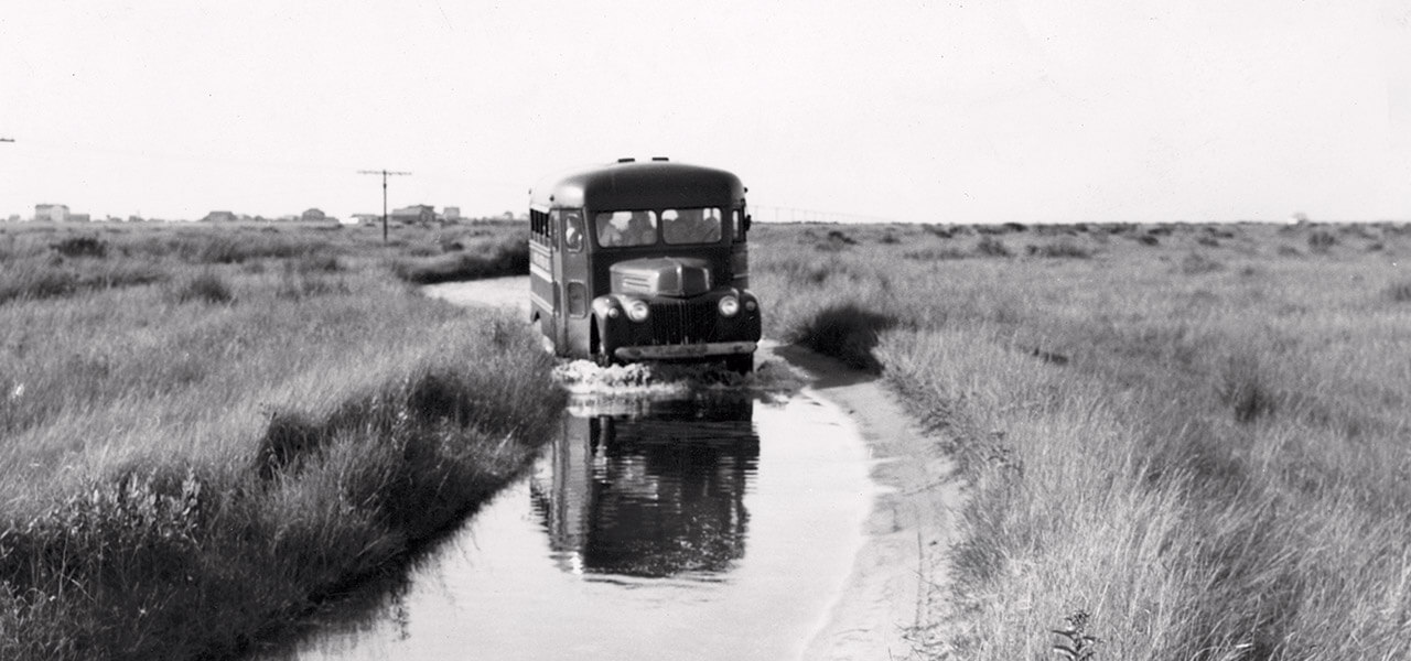 There were other obstacles to hurdle, too. The buses had to board a ferry to cross Oregon Inlet, and in the early days, when Stocky started driving, he had to sit on a stack of Sears, Roebuck and Co. catalogs just to see over the dash. Nonetheless, the business thrived into the early 1960s, when the completion of NC Highway 12 — and the opening of the Herbert C. Bonner Bridge over Oregon Inlet — allowed coastal drivers to use their own transportation.