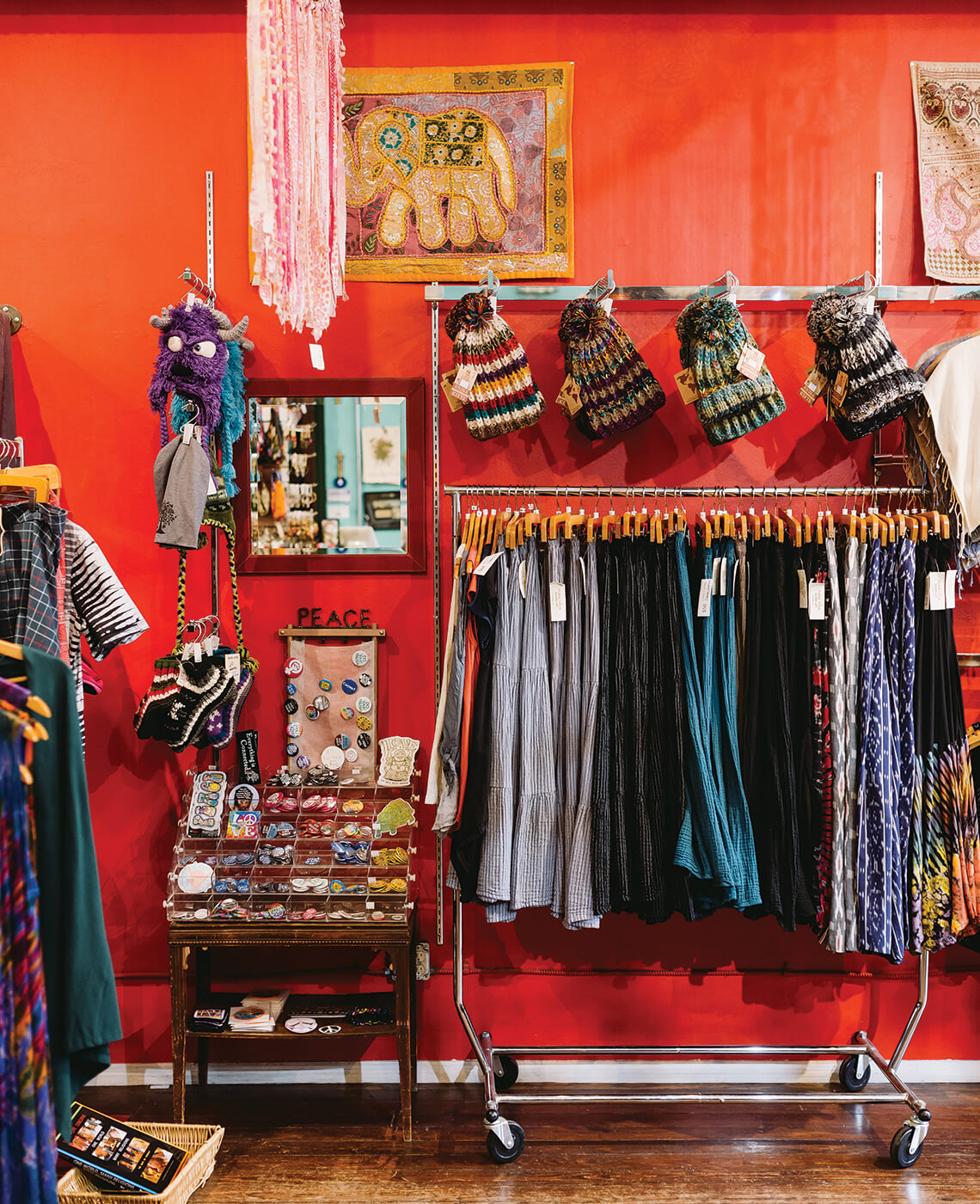 Color matters at Pura Vida: Hernandez chose hues for the walls of her shop using a feng shui compass to ensure a balanced energy. She picked colors representing water, wood, metal, and fire. photograph by Joshua Vasko