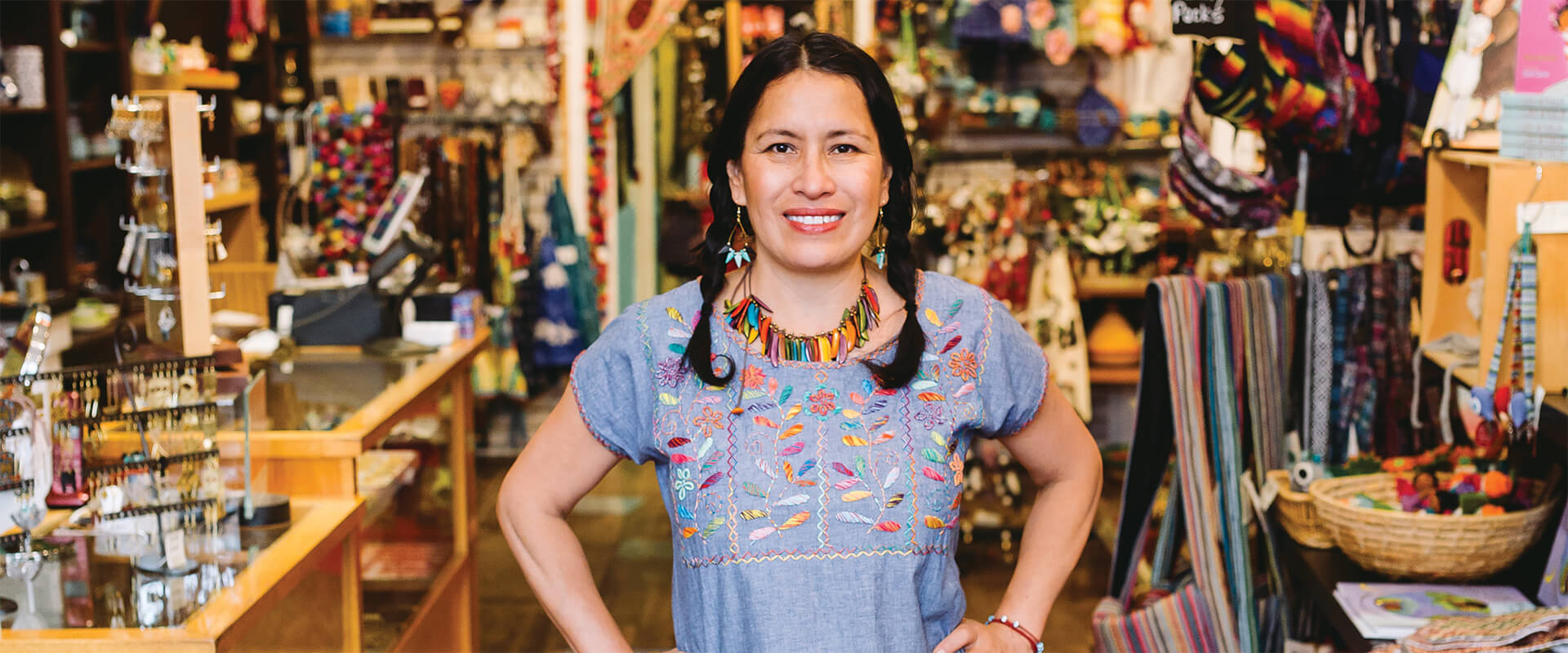 Behind the counter, Teresa Hernandez beams at them. She’s wearing an embroidered peasant blouse, accessorized with chunky eyeglasses and big golden earrings. “My favorite type of customer is eager to learn,” she says. “I love children because they come in and play, and then they get really excited when I tell them about a product.” She pauses to reflect, then smiles.