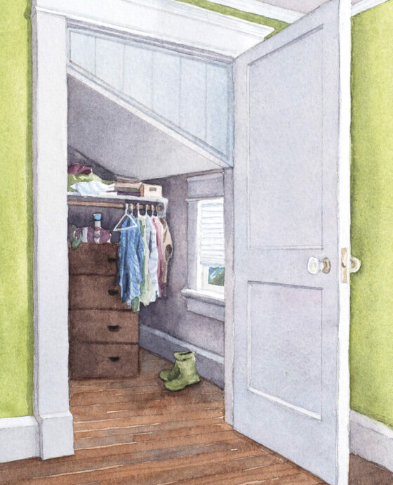 Though the boys are aging out of blanket forts and walkie-talkies, I don’t think they’re aging out of the closets themselves. They do live there, at least in part. A weird space is a cool space, or it can be, even when you’re not so little a kid anymore. Maybe one of them will turn his closet into a darkroom. A recording studio. A space lined with snapshots, assuming we’re still printing those. A kid of any age needs a space all their own. That’s what our crooked closets became, what they’re still becoming. So what if they’re not so great for us grown-ups? The house isn’t only ours.