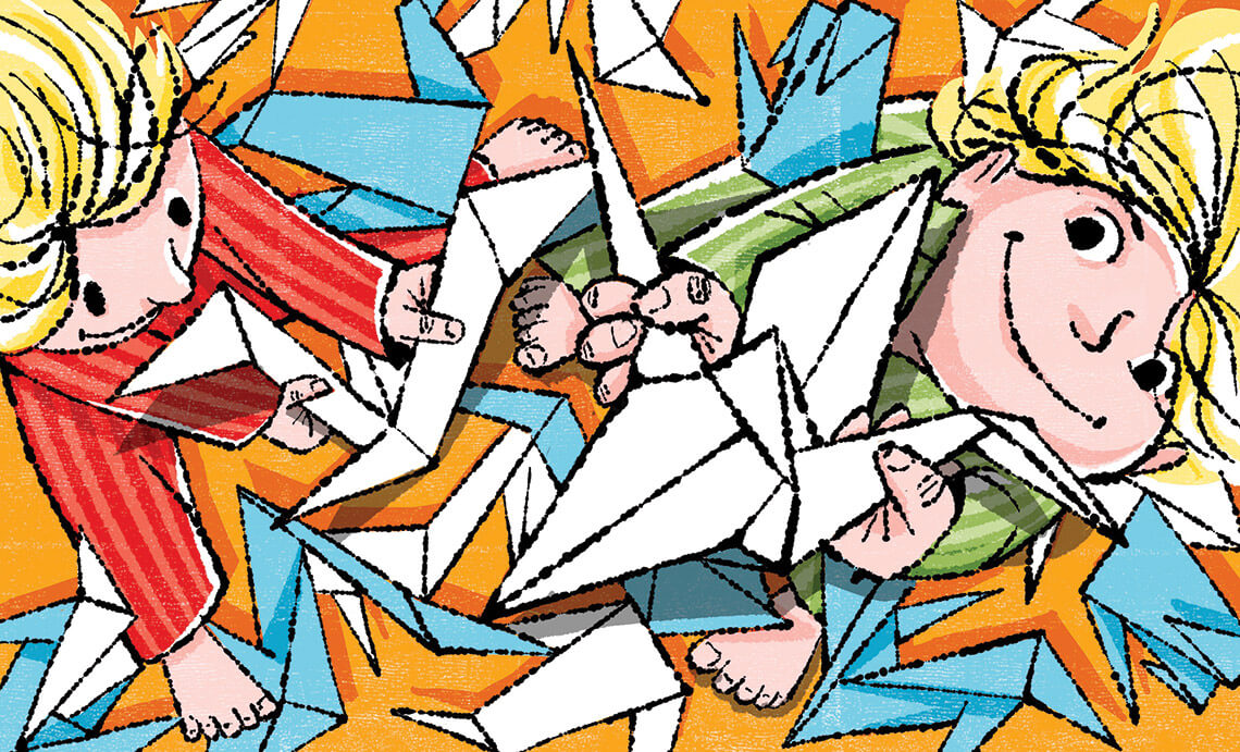 “They folded hundreds upon hundreds of origami cranes.” illustration by Ed Fotheringham