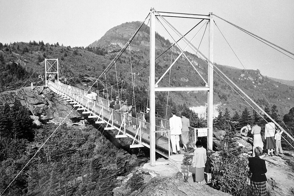 Whether touting famous NC products like Pepsi, Krispy Kreme, and Texas Pete or luring visitors to the stunning views at spots like the Mile High Swinging Bridge at Grandfather Mountain, savvy advertisers hit all the right notes. photograph by State Archives of North Carolina