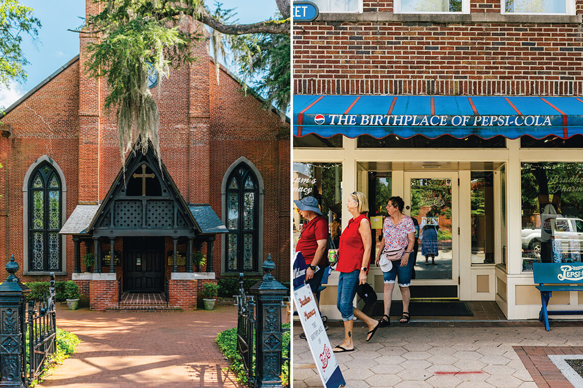 The tour through downtown New Bern features Christ Episcopal Church, originally built in 1824; and Caleb Bradham’s pharmacy, where he invented what would become Pepsi-Cola in 1893. photograph by Baxter Miller