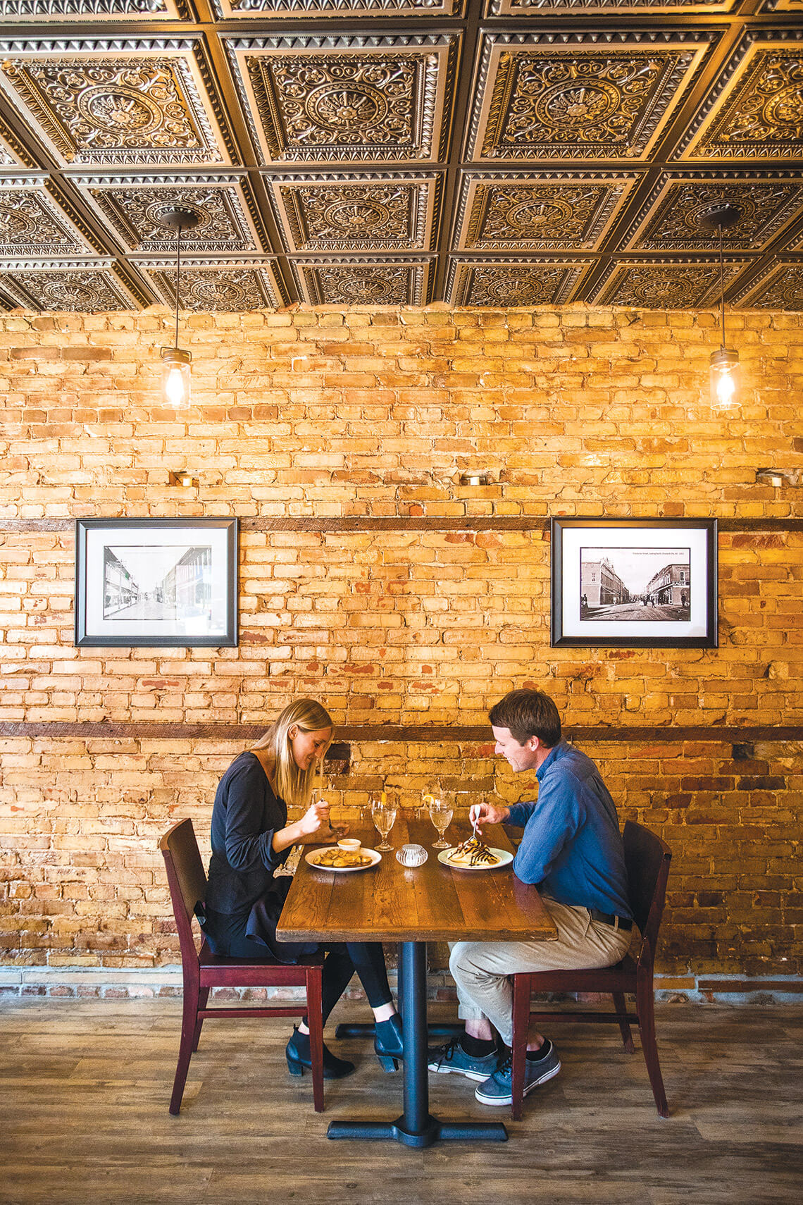 Historical photos of the restaurant’s building add to the throwback feel for diners enjoying Mike Mills’s dishes. photograph by Chris Hannant