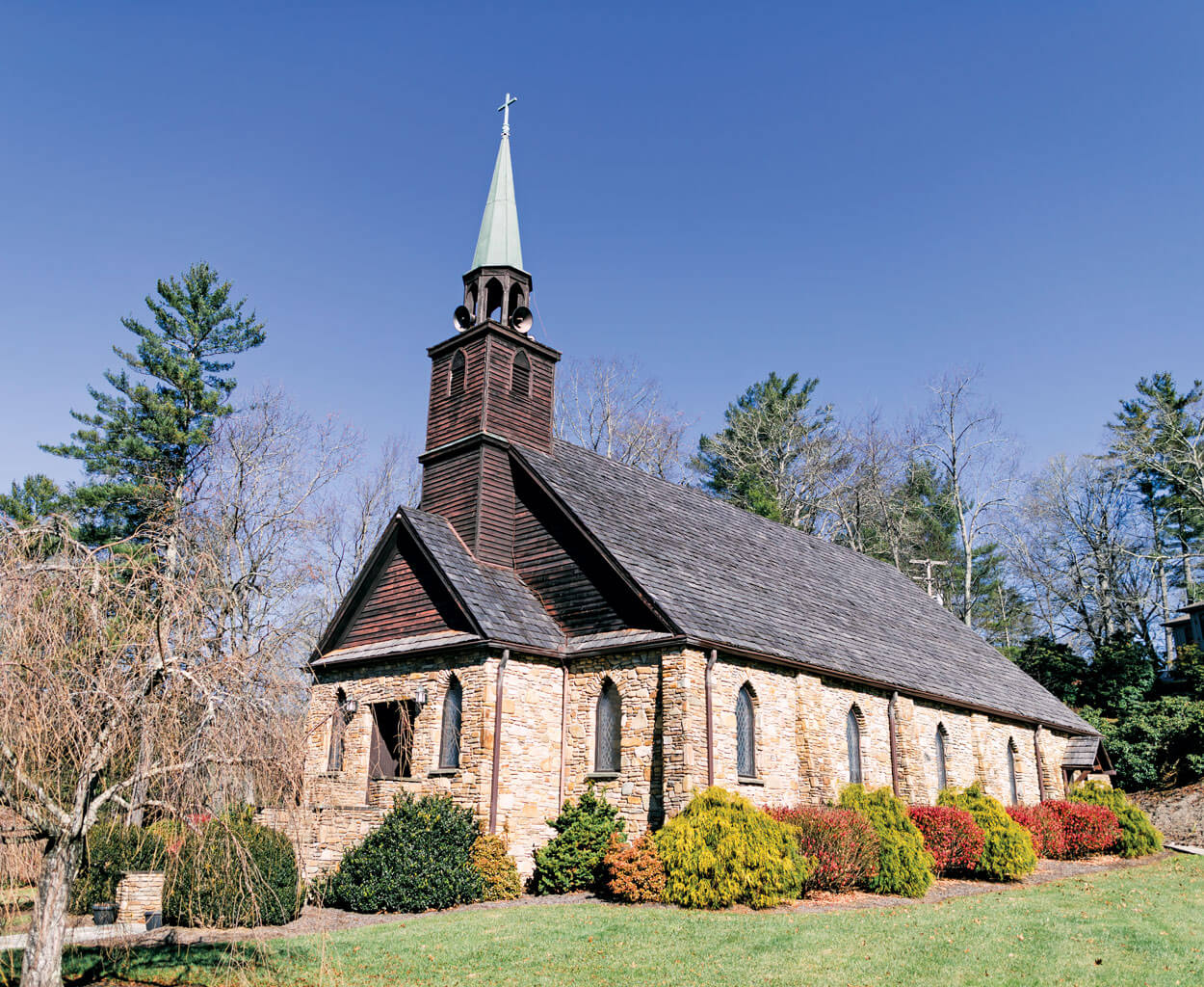 Next, swing through the village of Crossnore. For luck — not that you’ll need it on this jaunt — take a sip from the town’s recently restored stone drinking fountain. Legend has it that anyone who makes a wish as they sip will see it come true. Back on the main road, you’ll soon pass Crossnore Presbyterian Church, another building on the National Register of Historic Places. It, like many noteworthy buildings in the area, is made of stone from the Linville River, and clad in the distinctive bark shingles you see all over town.