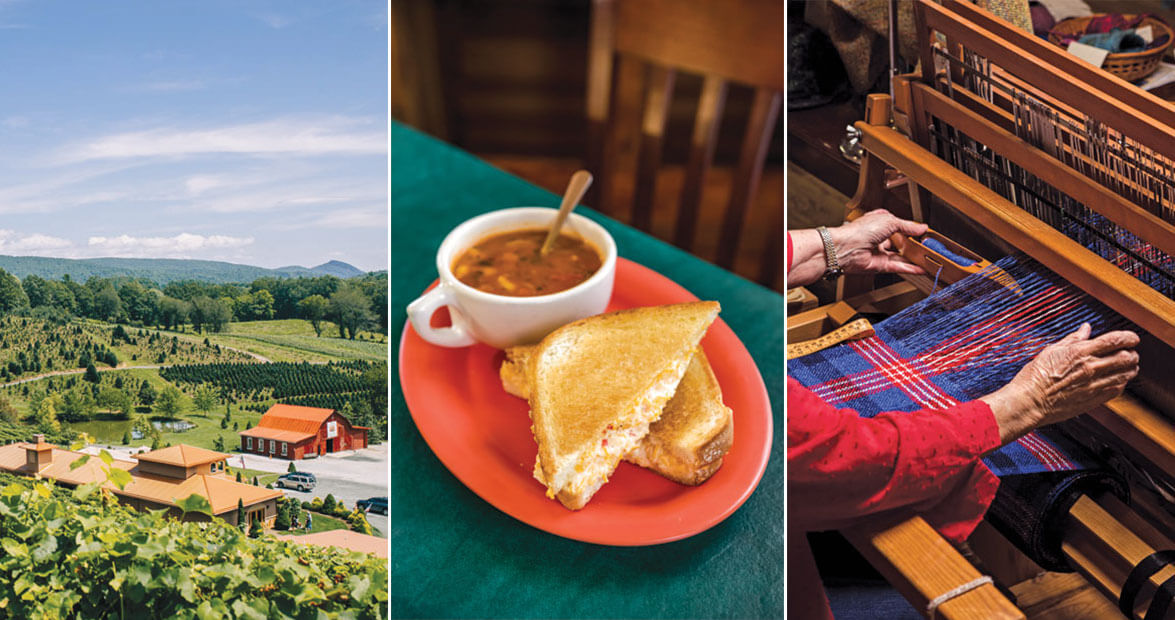 At Holden’s Arts & Crafts, Gail Edwards, daughter of the original owners, still handcrafts garden planters and baskets in the style she learned growing up. She forms her wares from twigs and vines, then decorates them with moss, bark, lichens, and pine cones gathered from the surrounding woods. She won’t reveal where she gets the materials (it’s a trade secret), but she does say that she has friends who help with the “wild-crafting” — men who know these mountains like the backs of their calloused hands. Before you leave, ask about her famous fresh apple cake, a beloved mountain specialty, because she might make you a photocopy of her handwritten recipe.
