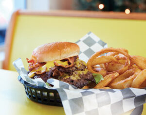 Cagle’s bacon double cheeseburger and onion rings are proof that not all of the works of art in Seagrove are made of clay. photograph by Stacey Van Berkel