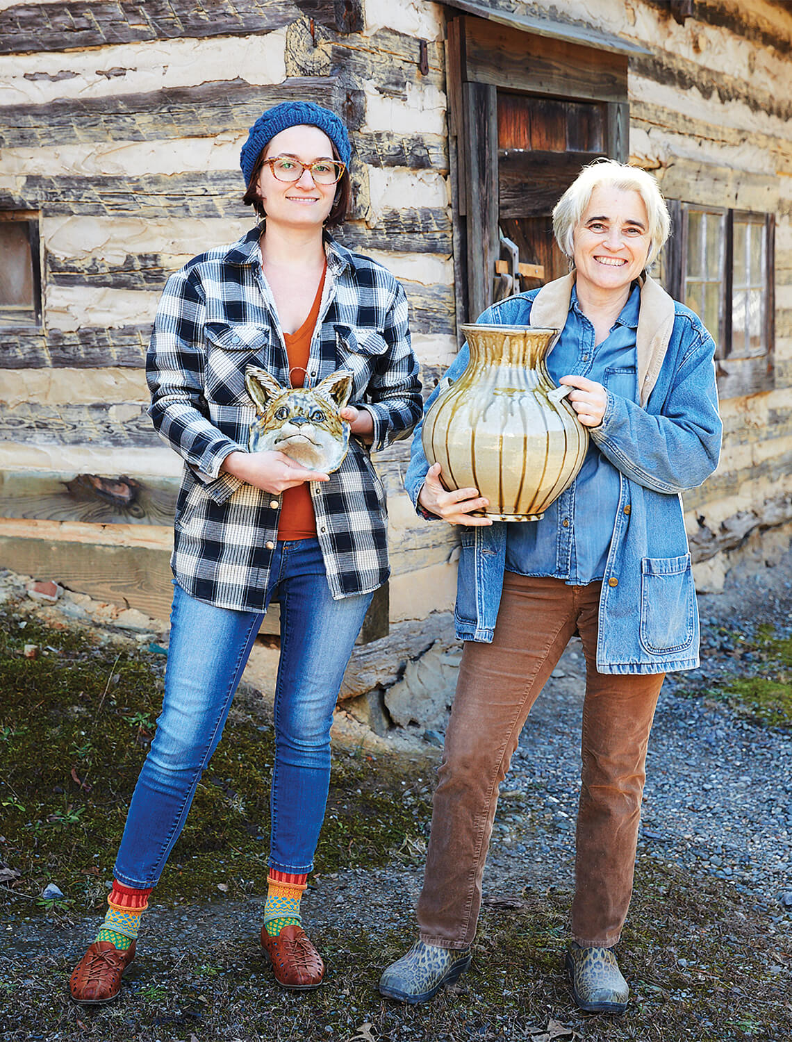 Bayle Owens, a seventh-generation potter who grew up at Jugtown, takes inspiration from nature — whether a bunny or a fox. Her other inspiration? Her mother, Pam, standing by her side. photograph by Stacey Van Berkel