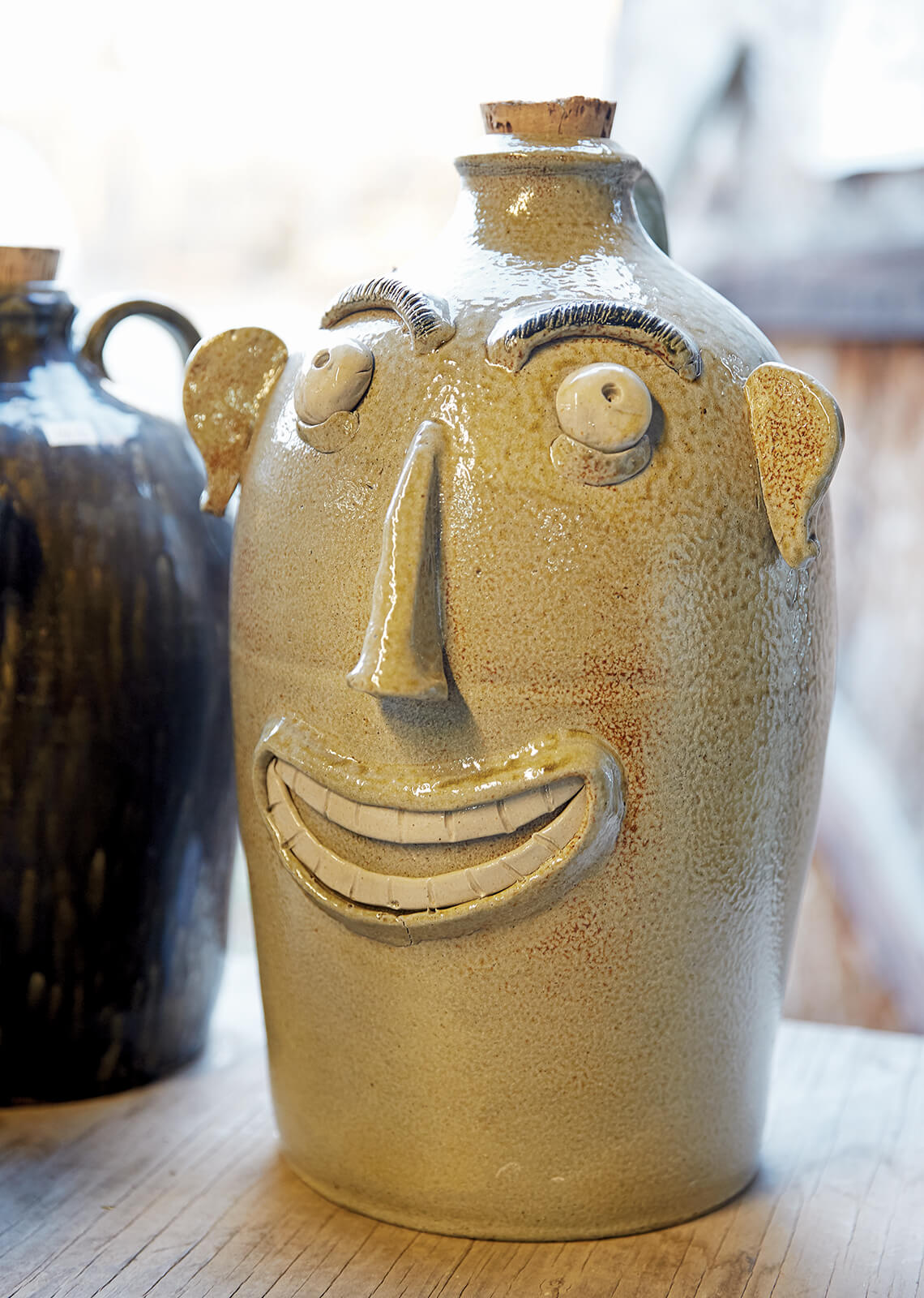 Collectible face jugs have been signature creations in Seagrove since the early 1800s. The shape of each jug is standard, but no two faces are alike. photograph by Stacey Van Berkel