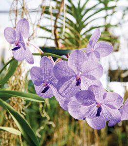 Linda Thorne’s orchids — like the Vanda Bangkok Blue — provide an unexpected splash of color in Seagrove. photograph by Stacey Van Berkel