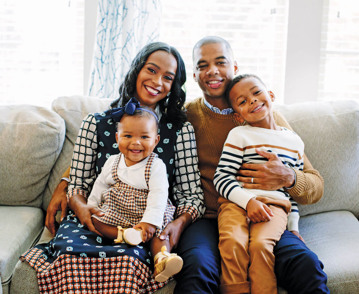 Jackie and Shaun Rodgers are mindful of the images that their kids — Cameron, 1, and Eli, 5 — are exposed to, not just on wrapping paper, but also birthday cards, books, and TV. “It’s important for them to see themselves in a lot of things,” Jackie says. photograph by Anagram Photo