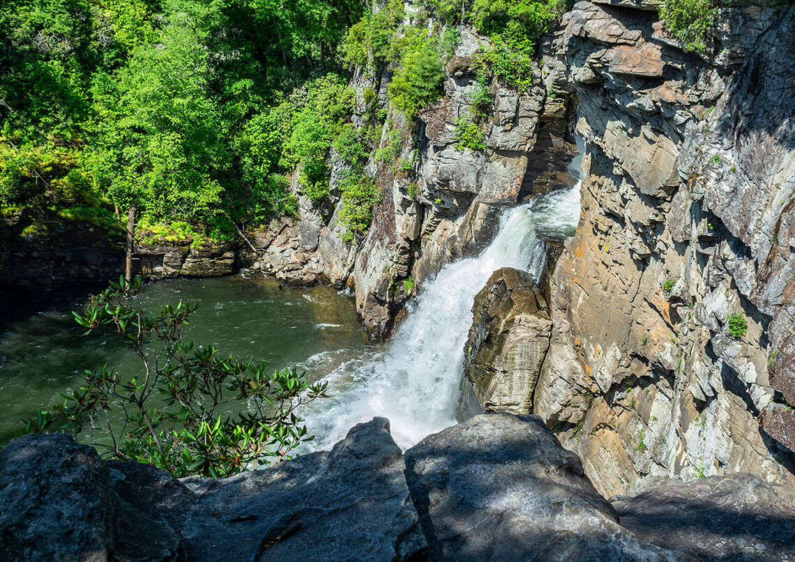The Plunge Basin Trail from the Linville Falls Visitor Center leads to an overlook and then down to the bottom of the falls for close-up views. photograph by MargaretW/iStock/Getty Images