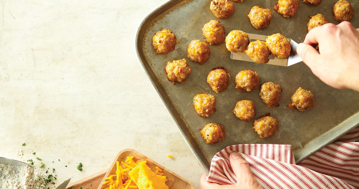 is the season for sausage balls. Sure, they’re perfectly at home on the table for Easter, the Fourth of July, and any Sunday supper, but a holiday buffet isn’t complete without a paper-towel-lined serving bowl brimming with sausage balls. They just belong there, tucked among Grandma’s barbecued cocktail weenies, Uncle John’s famous cheeseball, and Dad’s secret-recipe Chex Mix. (The secret? He bought bags of it at Food Lion — and everyone knows it, Dad!)