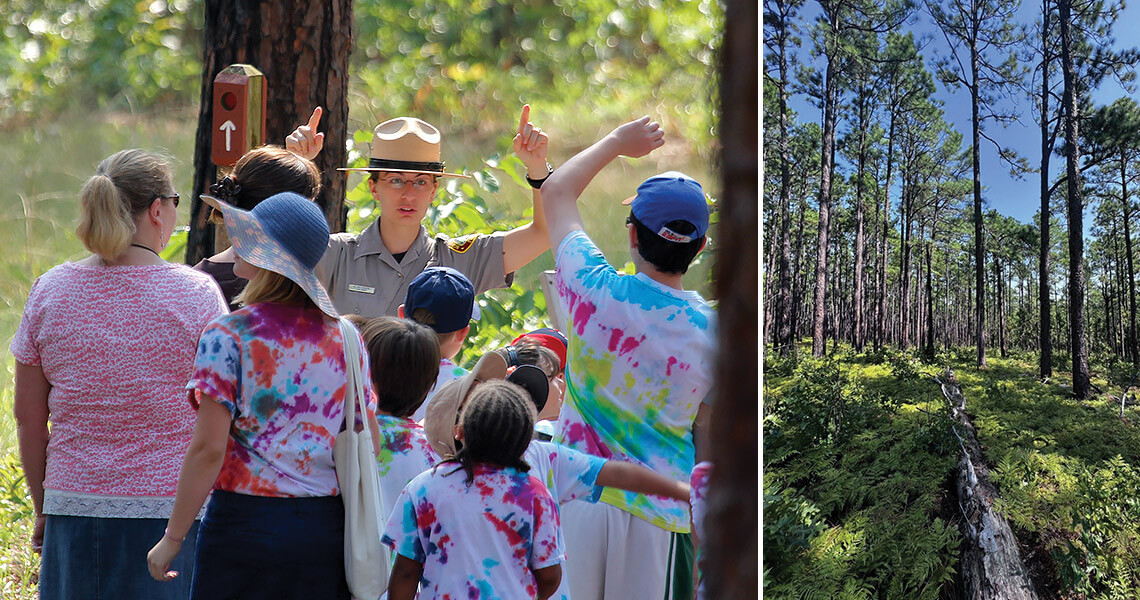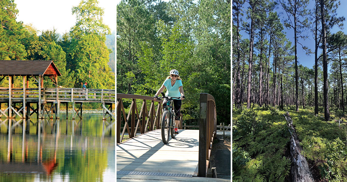 Before your weekend comes to a close, take about 30 minutes to walk the 1.4-mile Round Timber Trail, a peaceful loop through mature longleaf pines, where ancient giants stand alongside eager saplings.