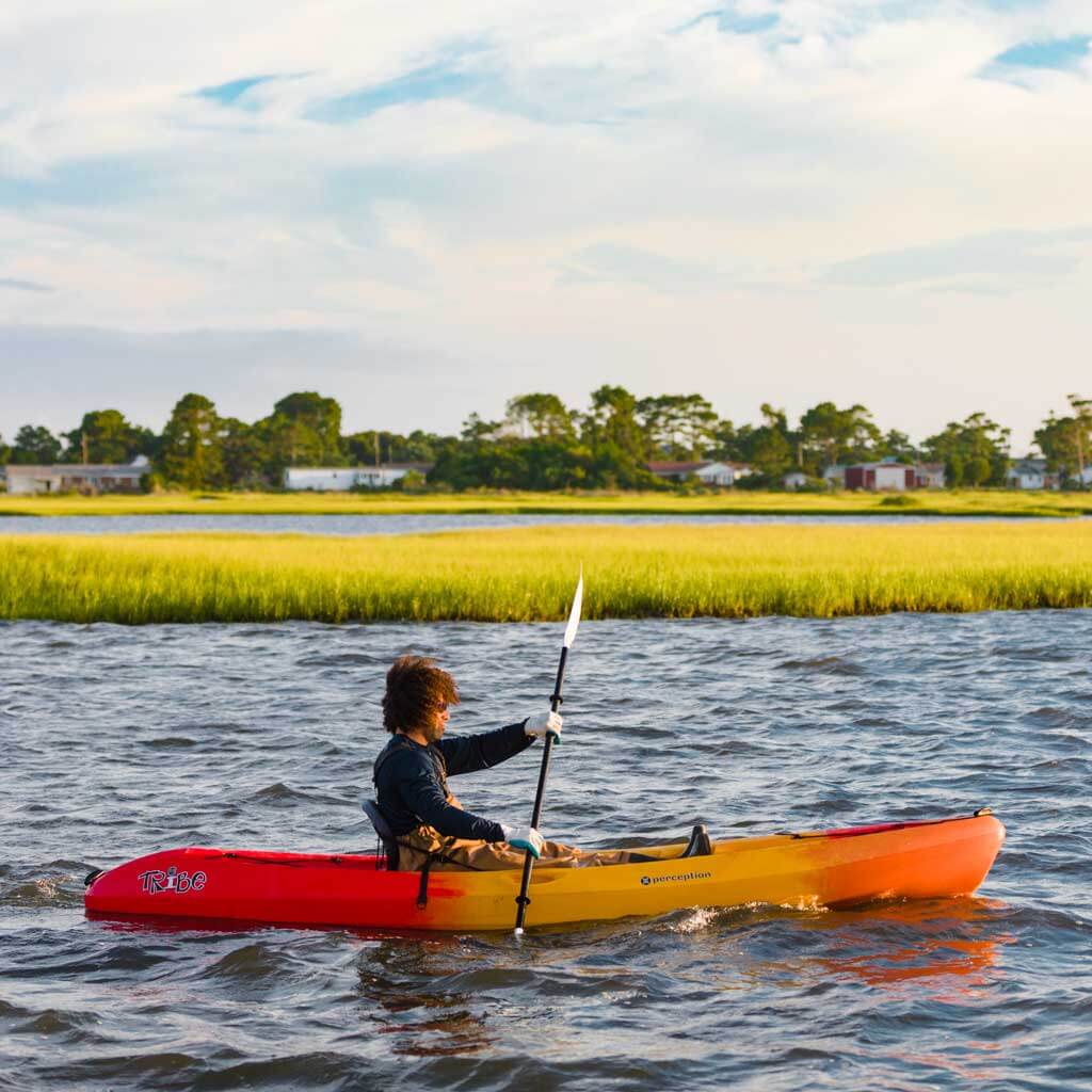 Ryan Bethea could be mistaken for a tourist, nudging his kayak into Westmouth Bay on a bright summer morning. Above this quiet stretch of Harkers Island, a lone osprey traces lazy circles in the crystalline blue sky. In the distance, the silhouettes of wild horses on Browns Island are visible through the thicket. Paddling these gentle waters, Bethea seems to be just another vacationer, taking in the wonders of the North Carolina coast.