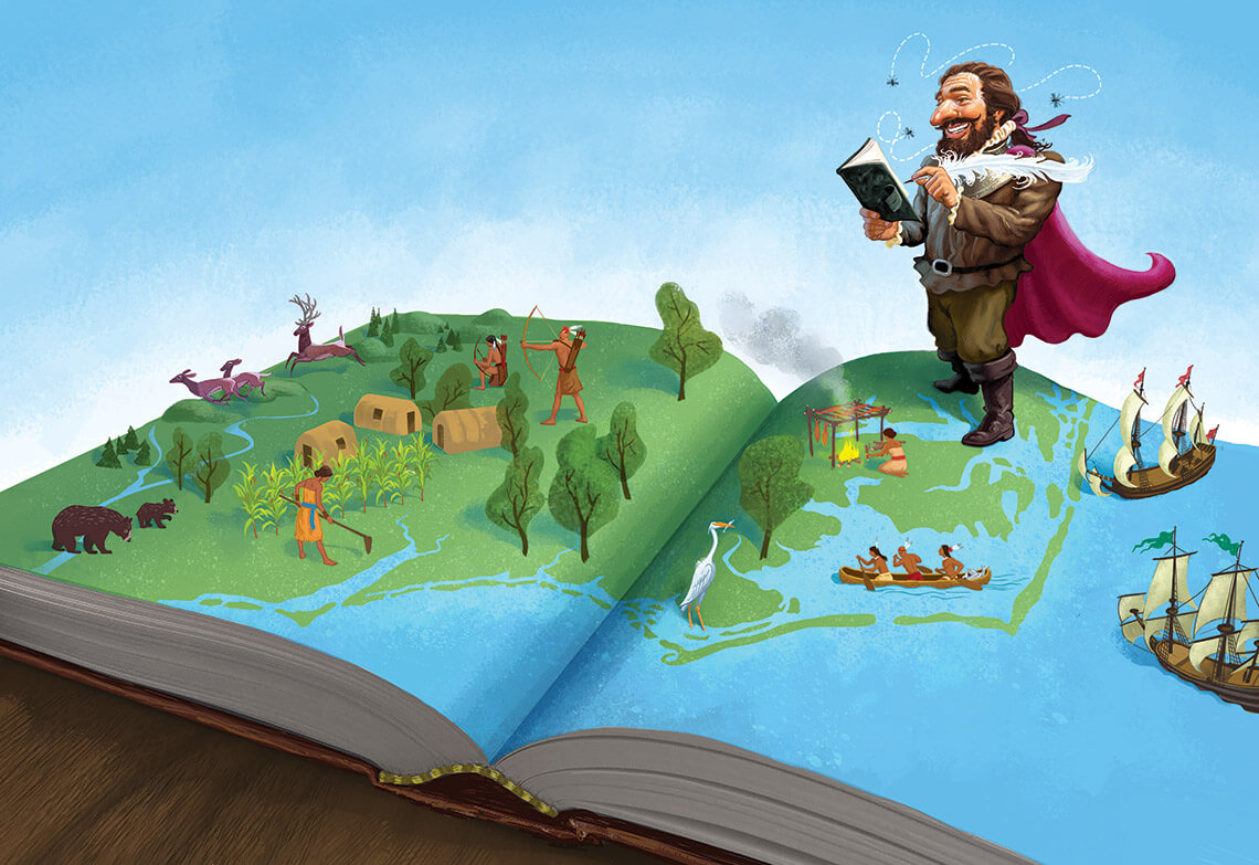 On rainy afternoons, the author explores the state vicariously: Books about early North Carolina history let his mind wander back to a time before European settlement. illustration by James Bernardin
