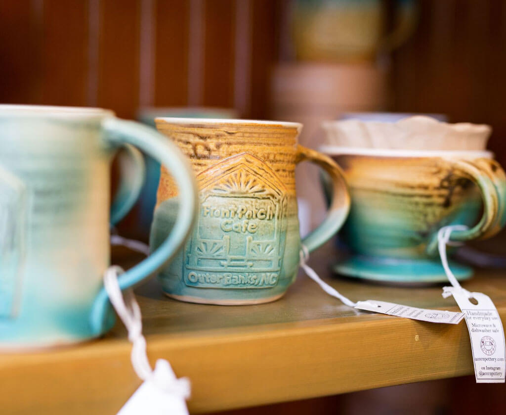 Browse Front Porch Cafe’s handmade mugs while sipping on a cup of coffee. photograph by Front Porch Cafe