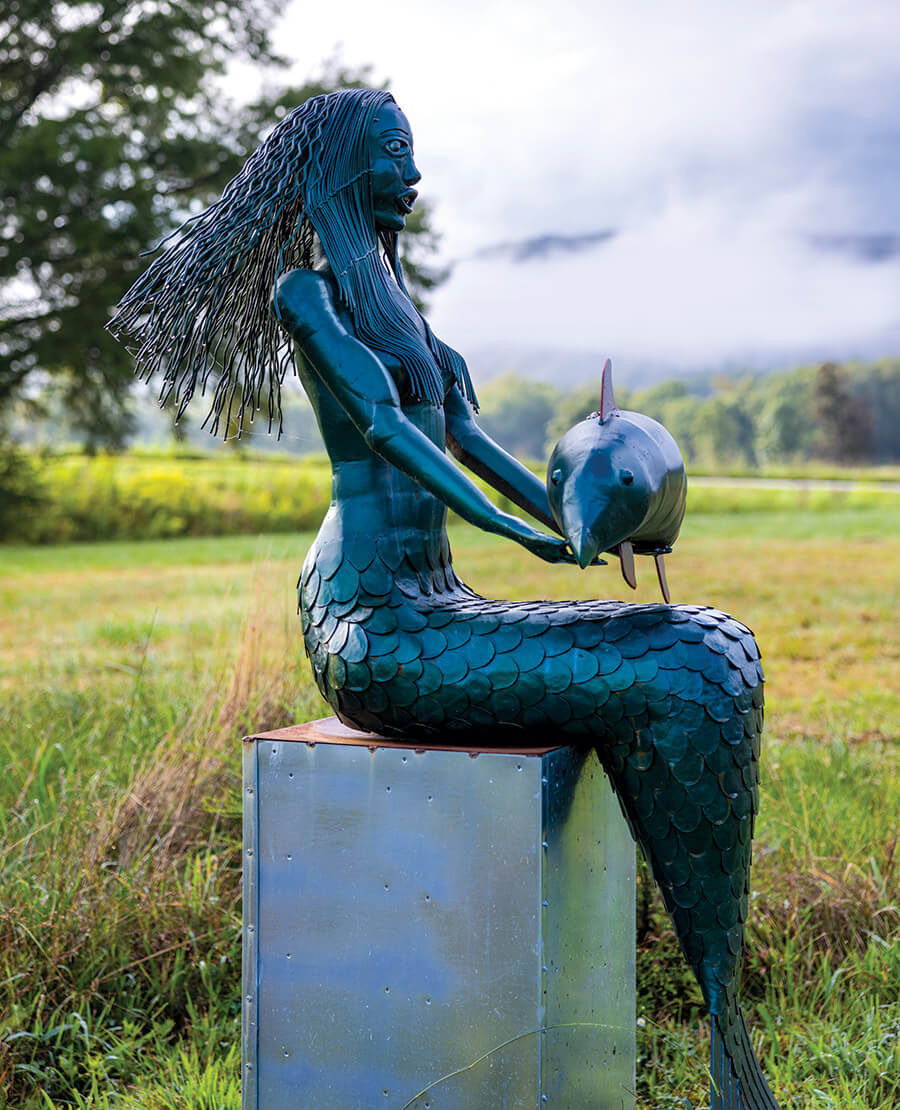 Mermaid, another piece by Corky Corrado, has since been sold, but the New York artist is no stranger to North Carolina. Nearly 30 miles south of the park, in Hickory, Corrado has a nine-foot metal sculpture he calls Joy Ride. photograph by David Uttley