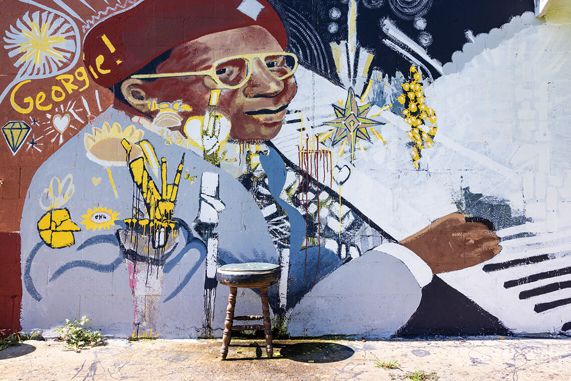Hot Springs muralist Brian Boles turned a wall at the park into his own personal canvas to honor North Carolina musicians like Thelonious Monk, a Rocky Mount native who became one of the most prolific composers in jazz. photograph by David Uttley
