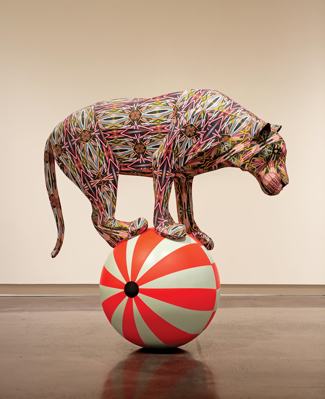 Anne Lemanski is known for her fantastical depictions of creatures great and small. In Tigris T-1, the North Carolina sculptor balanced a tiger on what looks like a giant circus ball. photograph by Tim Robison