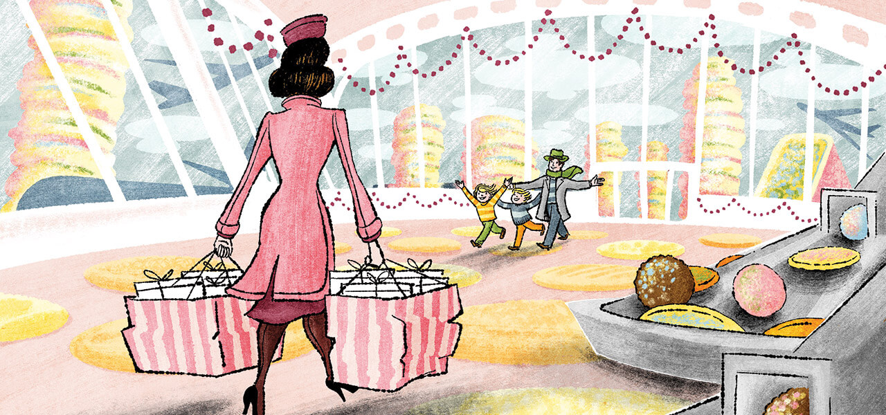 One of the ways I remember her is like this: walking up the jetway toward us, carrying shopping bags filled with shirt boxes of cookies. Everything about this is from another time, a time when my brothers and I were about the age my kids are now, a time when there were shirt boxes aplenty, a time when your family might meet you at the airport gate. Could you fly with 300 or 400 Christmas cookies these days? She did then — cookies she’d made all month long, all fall long, even, and frozen until the holiday. We’d hug her, and she’d smell powerfully of sugar.