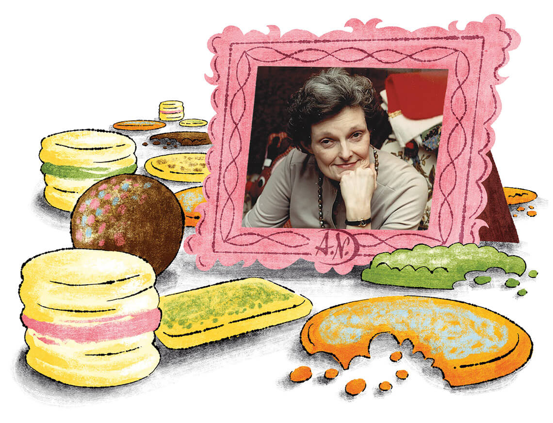 Inside those shirt boxes were cocoa-dusted sugar balls, a no-bake, hand-rolled cookie made principally from crushed Nilla Wafers and walnuts and melted chocolate and orange juice — then left to “ripen.” Lillian’s cookies, which were (and are) a featherweight butter cookie dusted with red or green sugar. Also, cream wafers, a tiny, deeply fussy sandwich cookie with raw-yolk icing — red and green for those Christmases of my childhood, and light blue for the groom’s cake at my wedding 20 years later.