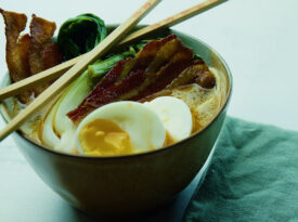 Introduce new flavors to the supper table with this umami-rich, hearty ramen dish topped with crisp strips of bacon.