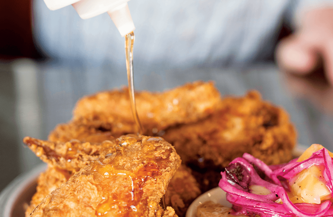 Used to be you ate fried chicken all by itself. Sauce? Don’t need it. Knife and fork? I’ve got hands. Fries? No, thank you, I prefer chicken skin. Things are different now.