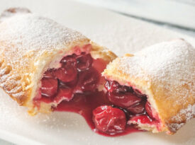These flaky hand pies have a cheery, cherry pie filling that offers a sweet zing, and a drizzle of pink Cheerwine glaze on top seals the deal.