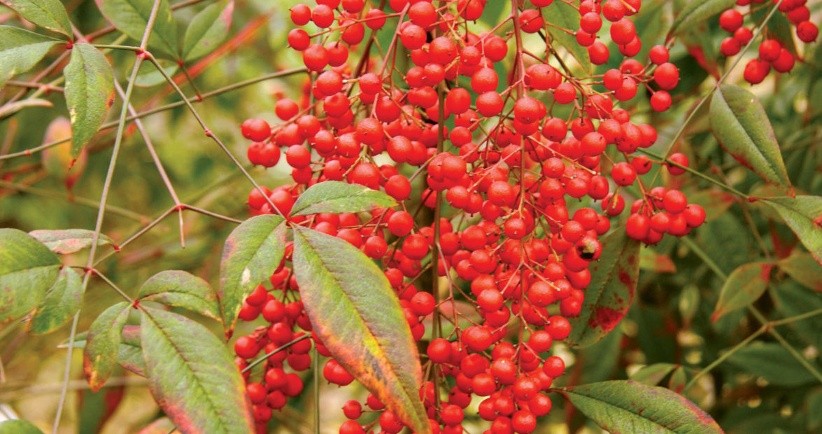 Nandina’s elegant leaves and radiant berries add natural beauty to holiday decor.