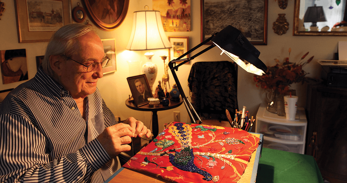 At 80 years old, Eric Ennis creates artwork on fine fabrics with skills he’s practiced for decades.